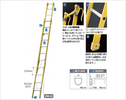 FRP製1連梯子で4.04mです。電気工事での必需品です。
